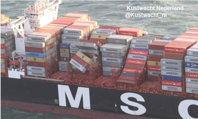 巨型集裝箱船MSC ZOE在1月1日至1月2日夜間在德國(guó)Borkum北部惡劣天氣下的北海失去了30多個(gè)集裝箱,途中從葡萄牙Sines到德國(guó)不來梅港。據(jù)報(bào)道,有18個(gè)集裝箱位于Vlieland和Terschelling地區(qū)的荷蘭海岸上,7個(gè)集裝箱被沖上岸,其內(nèi)容散落在周圍,主要是汽車零件和玩具。3個(gè)容器含有有機(jī)過氧化物,可能具有危險(xiǎn)的反應(yīng)性。如果它們僅受到輕微的熱量,摩擦,機(jī)械沖擊或不相容材料的污染,它們可以非常迅速地或爆炸性地分解。這些3個(gè)集裝箱,截至1200 UTC,尚未找到。MSC ZOE同時(shí),在北方方向緩慢移動(dòng),據(jù)報(bào)道,試圖評(píng)估丟失的容器數(shù)量,以及可能的其他損害。